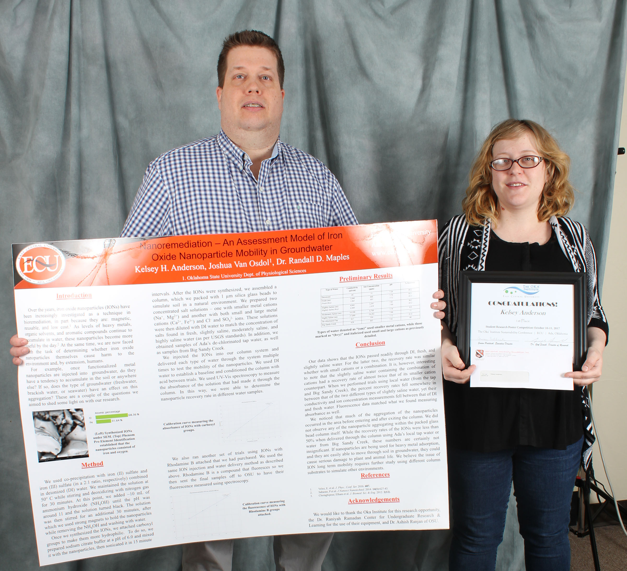 “We were interested in Nanoparticles and what they will do once they find their way into Oklahoma groundwater,” said Maples. “I’m grateful to the Oka’ Institute and their donors, the Chickasaw Nation, for the opportunity to do research and I’m very proud of Kelsey.”