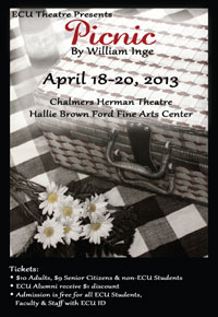 Picnic, a play which won the 1953 Pulitzer Prize for Drama, will be performed by students from the East Central University School of Fine Arts on April 18-20 at the Chalmers Herman Theatre inside the Hallie Brown Ford Fine Arts Center.
