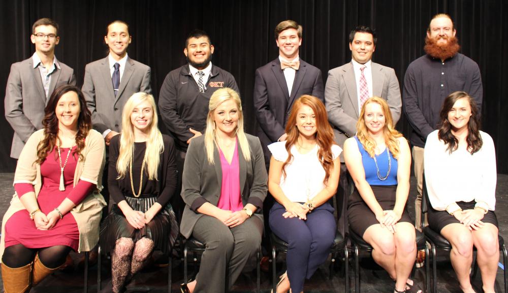 Candidates for East Central University’s 2015 Homecoming Queen/King have been announced. The king and queen will be crowned at halftime Saturday of the Tigers’ football game with Arkansas-Monticello. The kickoff is at 4 p.m. Pictured on the front row (left to right) are queen candidates Randi Camp, a senior family and consumer science major from Broken Bow, representing the Student Association of Family and Consumer Sciences; Danaka Mowdy, a senior business administration major from Vanoss, representing Zeta Tau Alpha; Casey Black, a junior business management major from Chickasha, representing the Business Leaders Association; Taylor Armendariz, a senior nursing major from Marietta, representing Chi Omega; Autumn Suydam, a senior criminal justice-law enforcement major from Keller, Texas, representing Lambda Alpha Epsilon and Carlee Henderson, a junior biology major from Latta, representing the Vision Bank Presidential Leadership Program. The king candidates are (left to right): Brandon Apala, a junior biology/pre-med major from McAlester, representing the Resident Housing Association; Christian Cody, a senior business management major from Tecumseh, representing the Business Leaders Association; Joe Franco, a senior early childhood education major from Purcell, representing Pi Kappa Tau; Jesse Williamson, a junior business administration major from Pauls Valley, representing Pi Kappa Alpha; Gregory Votaw, a senior English major from Seminole, representing the Vision Bank Presidential Leadership Program and Rocky Moore, a senior English major from Pasadena, Calif., representing the ECU football team. Not pictured are queen candidate Annette Wright, a senior musical theatre major from Okmulgee, representing Collage and king candidate Jacob Walker, a sophomore accounting major from Konawa, representing the Baptist Student Union.