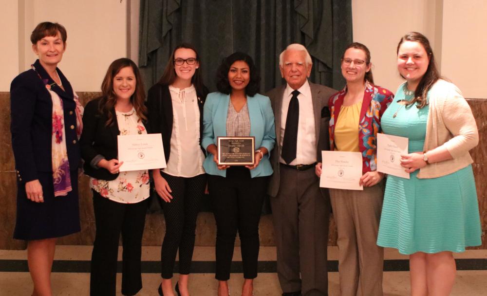 The award, presented to a top ECU senior at a luncheon Tuesday, April 24, is named in honor of George Nigh, the former governor of Oklahoma and ECU alumnus. Nigh served four terms in the Oklahoma House of Representatives, four as lieutenant governor and two as governor. He was also president of the University of Central Oklahoma.
