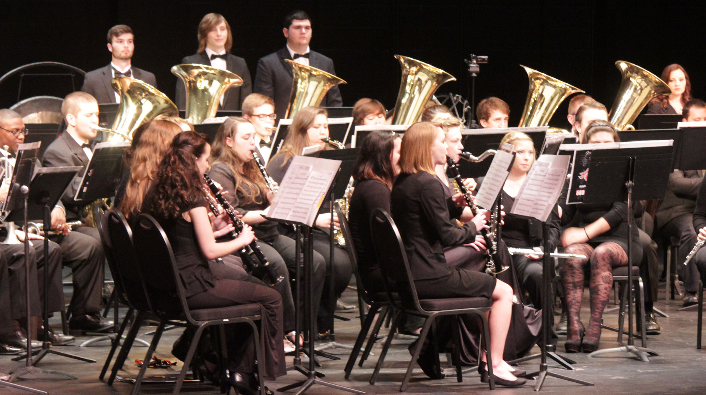 The Wind Ensemble is performing the first movement of “A Sacred Suite” by Brant Karrick, “Riders for the Flag” by Sousa and “Hymn of the Highlands” by Philip Sparke.